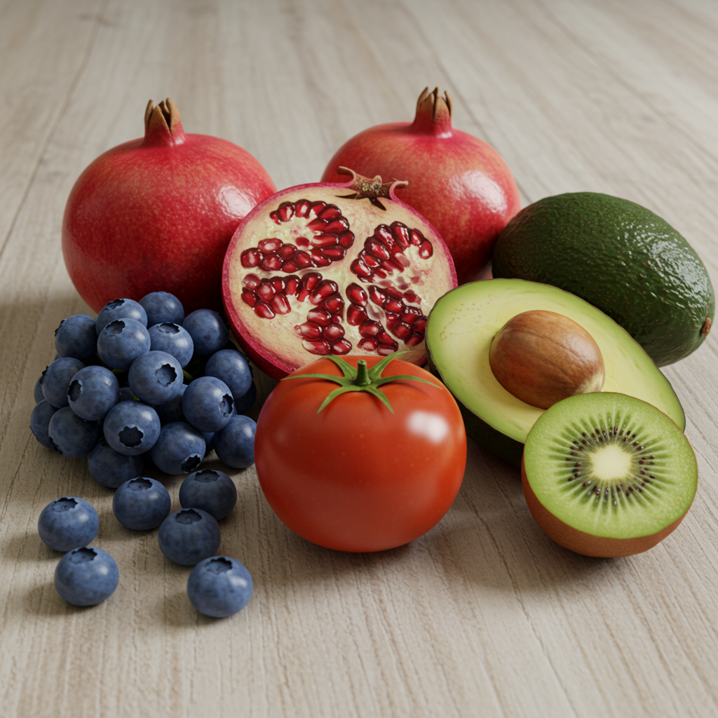 비타민 C가 풍부한 과일(키위, 딸기)과 비타민 E가 풍부한 과일(아보카도)을 함께 섭취하면 항산화 시너지 효과를 높일 수 있습니다. 또한, 토마토는 기름과 함께 섭취할 때 라이코펜 흡수율이 높아지니 올리브유와 함께 요리하는 것을 추천합니다. 다만, 과일은 당분이 많으므로 과도한 섭취는 피하고, 특정 질환이 있다면 전문가와 상담 후 섭취량을 조절하는 것이 좋습니다.