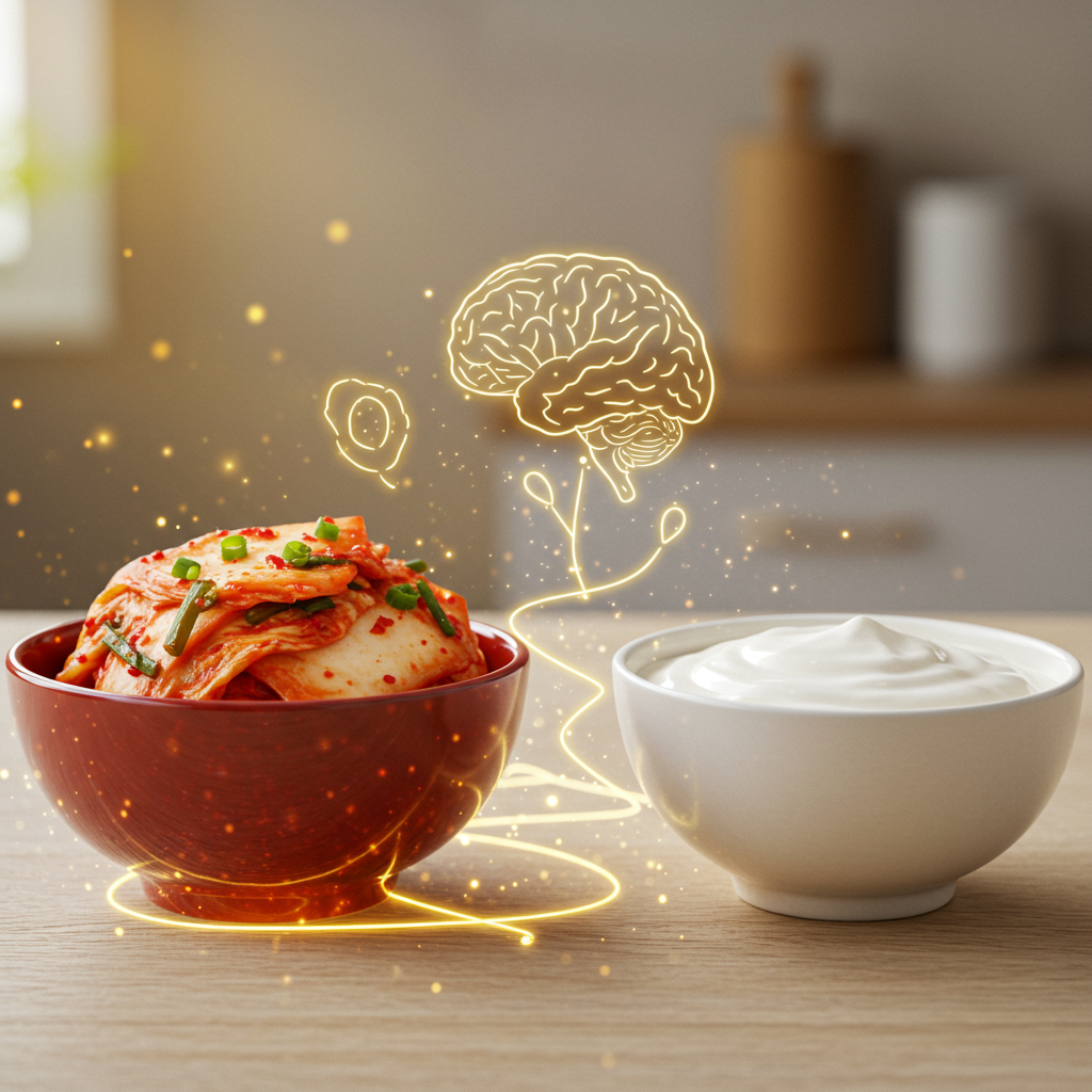 효능 5: 장-뇌 축 연결: 발효식품이 정신 건강(스트레스, 불안)에 미치는 놀라운 영향 🧠