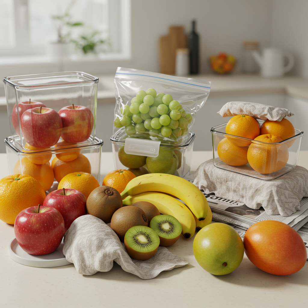 - 밀폐 용기 활용: 과일의 수분 증발을 막고 외부 오염을 방지하기 위해 밀폐 용기나 지퍼백에 넣어 보관하는 것이 좋습니다.