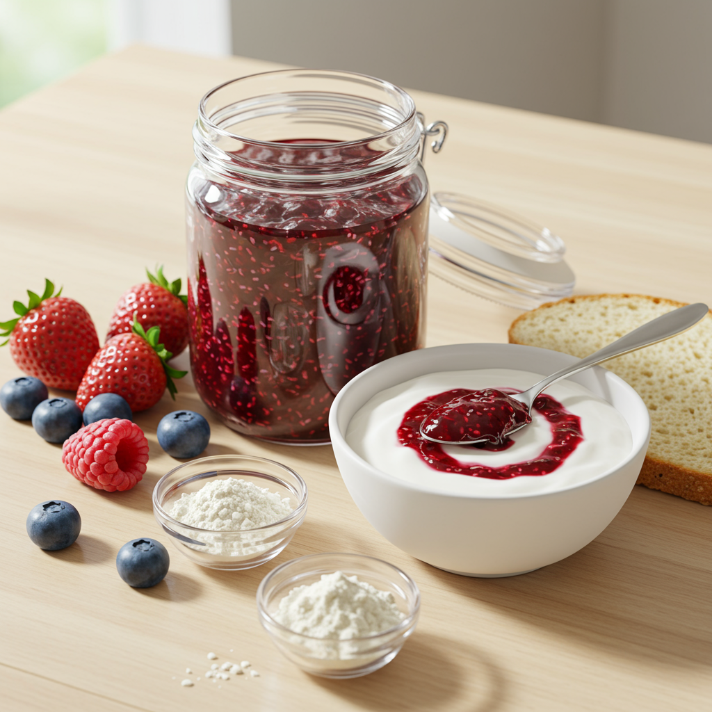 잼의 농도는 개인의 취향에 따라 천차만별이죠. 펙틴 없이도 잼의 걸쭉한 질감을 내고 싶다면 치아씨드가 아주 유용합니다. 치아씨드는 물을 흡수하면 젤리처럼 부풀어 오르는 성질이 있어 잼의 농도를 자연스럽게 걸쭉하게 만들어줘요. 끓이는 과정 마지막에 넣고 잘 섞어주면 되는데, 많이 넣을수록 더 걸쭉해지니 1~2큰술부터 시작해서 조절해 보세요. 치아씨드는 오메가-3와 식이섬유도 풍부해서 건강에도 좋답니다! 💪