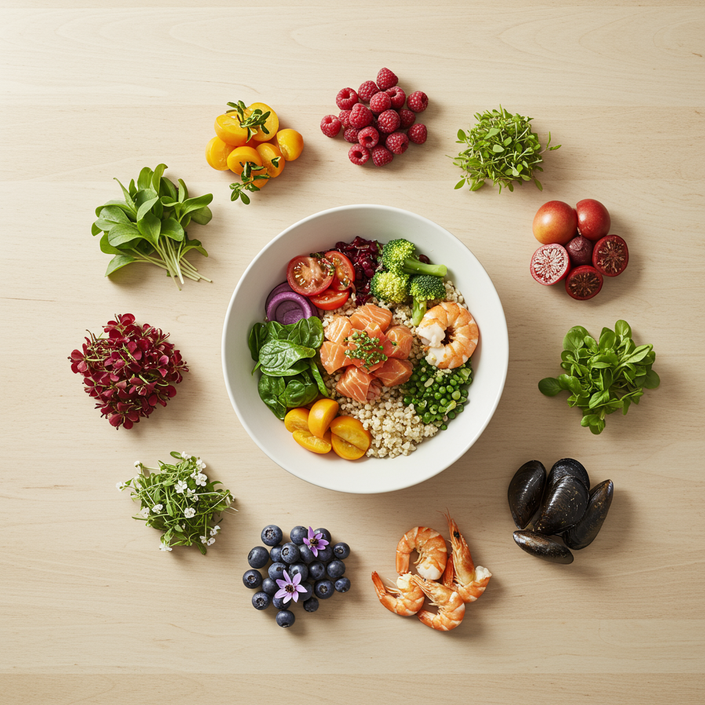 📊 계절별 맞춤 전략: 봄나물(식이섬유), 여름과일(수분/항산화), 가을채소(복합탄수화물), 겨울해산물(고단백/오메가-3)로 내장지방 싹!
