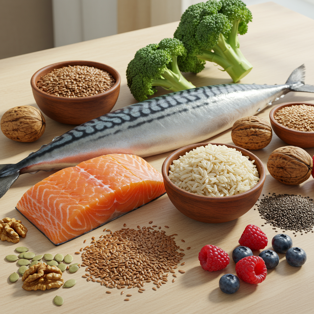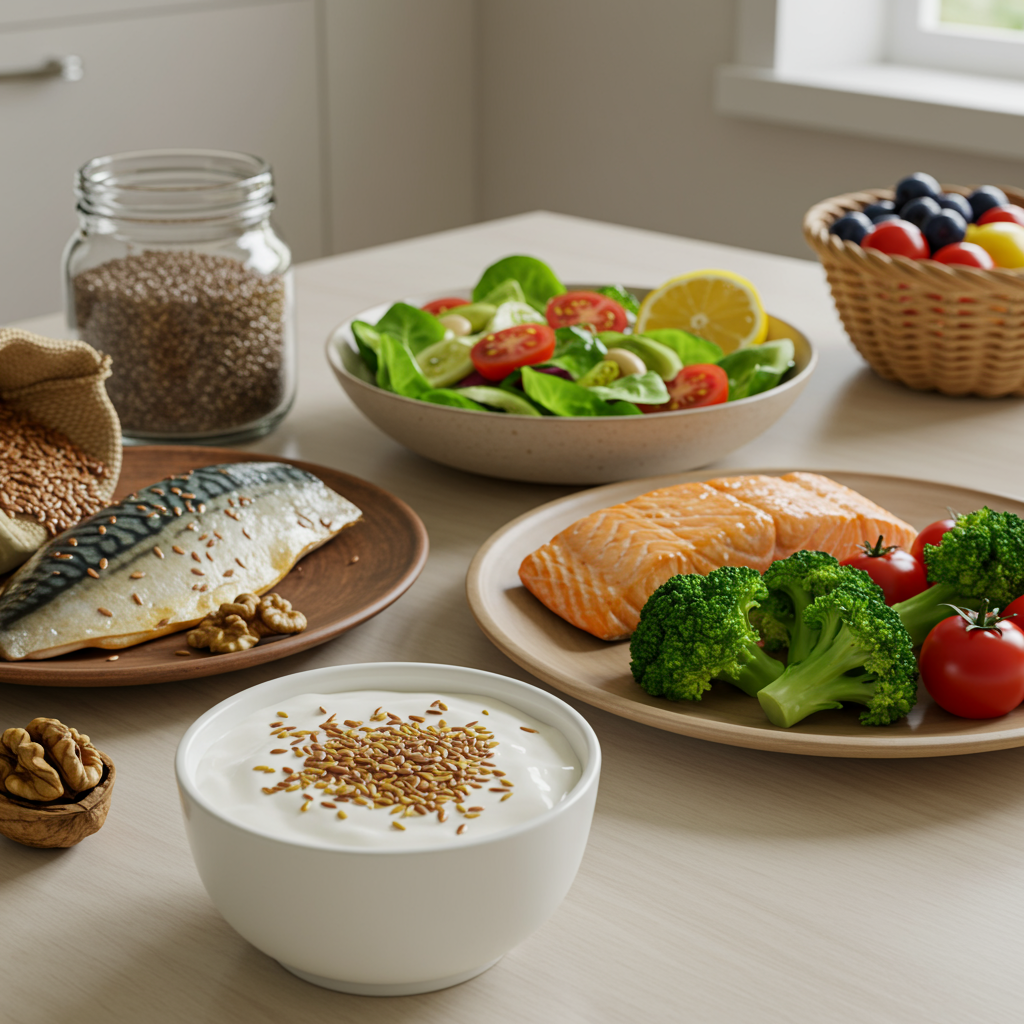 • 정기적인 생선 섭취: 일주일에 2~3회 이상 연어, 고등어, 정어리 등 등푸른생선을 식단에 포함합니다.
