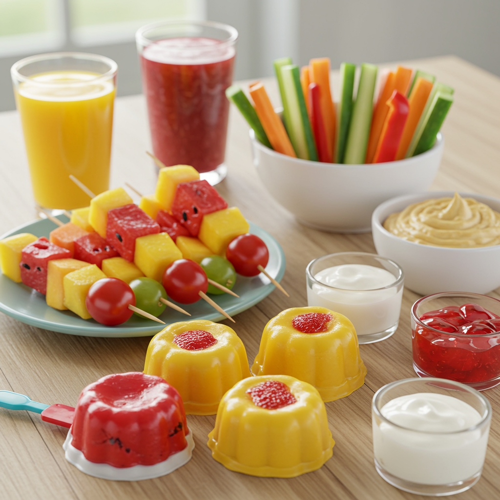 A: 👉 아이들이 좋아하는 형태로 변형하여 제공하는 것이 중요합니다. 알록달록한 과일 꼬치, 직접 만든 과일 아이스크림, 채소 스틱과 맛있는 딥 소스, 과일 젤리나 스무디 등 재미있고 시각적으로 매력적인 간식으로 만들어주면 거부감 없이 잘 먹을 수 있습니다. 함께 요리하는 경험도 좋은 방법이에요.