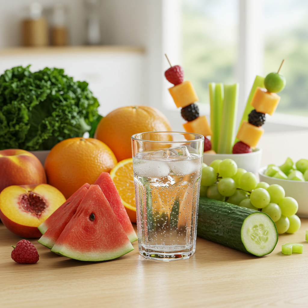 단순히 물만 마시는 것보다 과일이나 채소를 통해 수분을 보충하면, 몸에 꼭 필요한 전해질(칼륨, 마그네슘 등)과 비타민을 함께 섭취할 수 있어 탈수 예방에 더욱 효과적입니다.