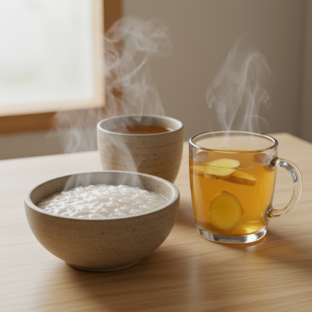👩‍💻 네 번째 핵심: 여름철 소화 불량엔 따뜻한 죽, 숭늉, 차가 최고의 선택!