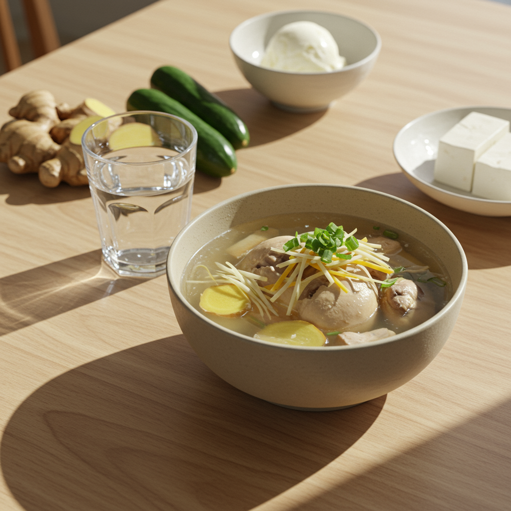 📌 다섯 번째 핵심: 찬 음식은 '적당히, 천천히', 따뜻한 음식으로 속 다스리기, 소화 부담 적은 식재료, 온기 식단, 미지근한 물 섭취로 건강한 여름 나기!