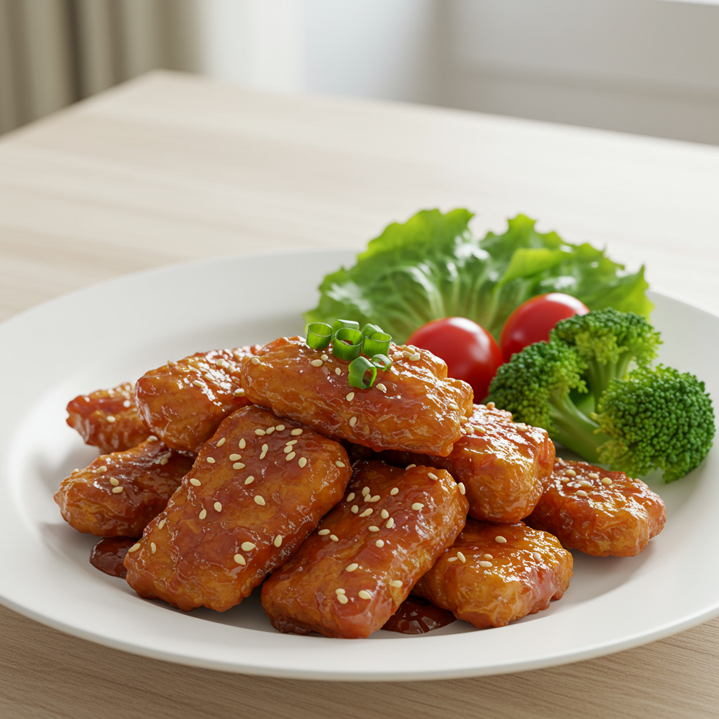 알룰로스는 설탕과 비슷한 단맛을 내지만, 칼로리는 설탕의 10분의 1 수준이고 혈당에 거의 영향을 주지 않는 차세대 설탕 대체 감미료입니다. 당뇨 환자분들도 안심하고 단맛을 즐길 수 있게 해주고, 다이어트 중에도 죄책감 없이 달콤한 유혹을 이겨낼 수 있도록 도와줍니다. 설탕의 끈적임 없이 깔끔한 단맛이 특징이라 강정 소스에 정말 잘 어울려요.