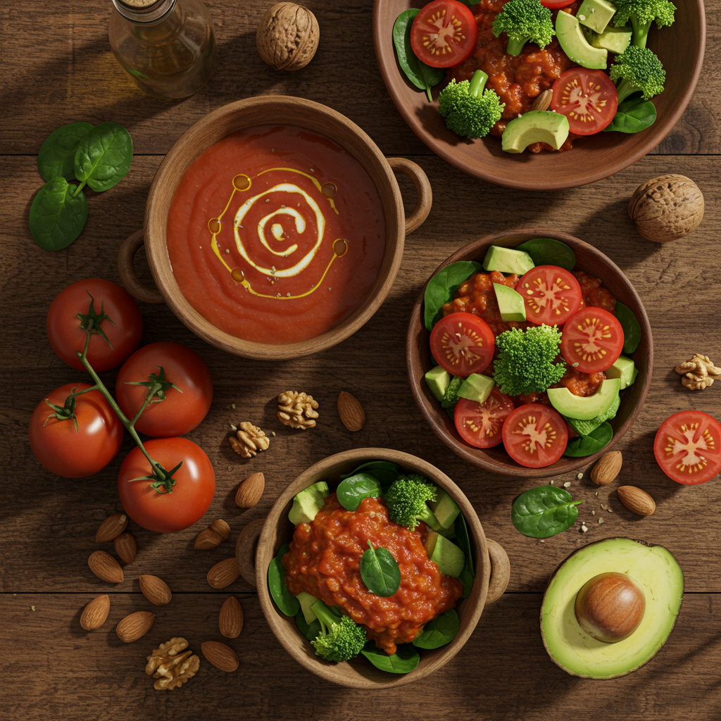 예를 들어, 토마토 샐러드에 올리브 오일을 넉넉히 뿌리거나, 토마토 수프를 만들 때 올리브 오일을 살짝 두르는 것만으로도 큰 차이를 만들 수 있습니다. 아보카도와 토마토를 함께 샐러드로 즐기는 것도 환상의 조합이죠!