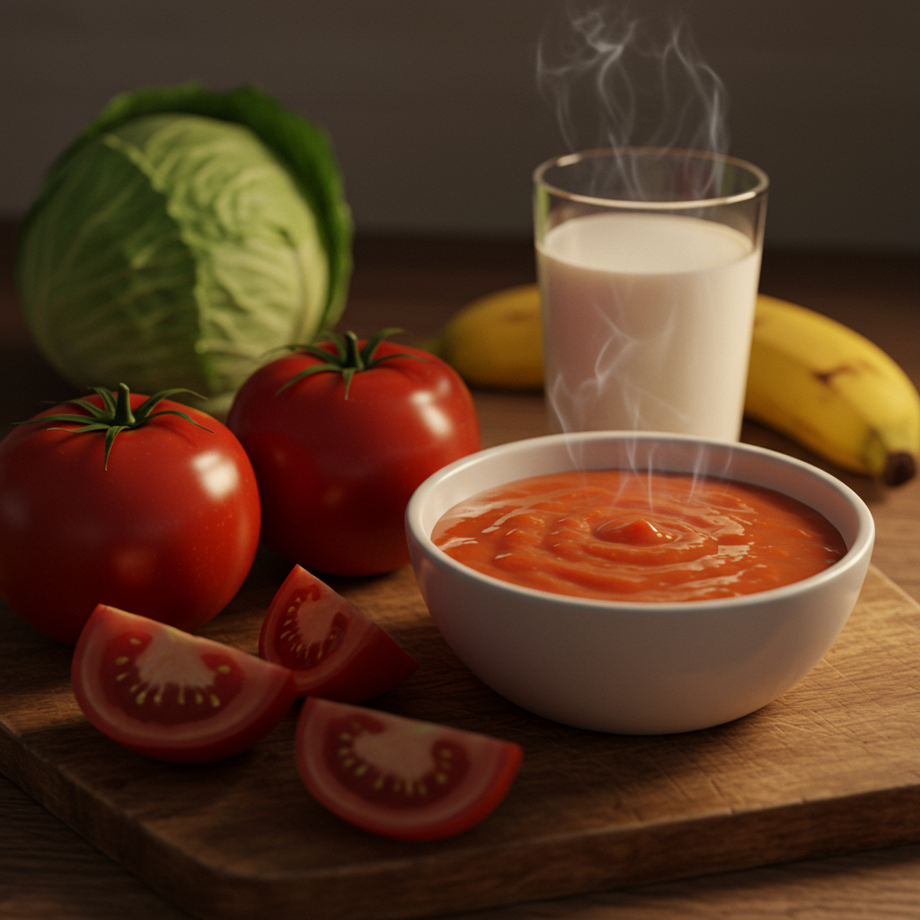 - 익혀 먹기: 생 토마토보다 익힌 토마토는 산성이 약해져 위장에 부담이 덜합니다. 토마토소스, 수프 등으로 조리하여 섭취하는 것을 추천해요.