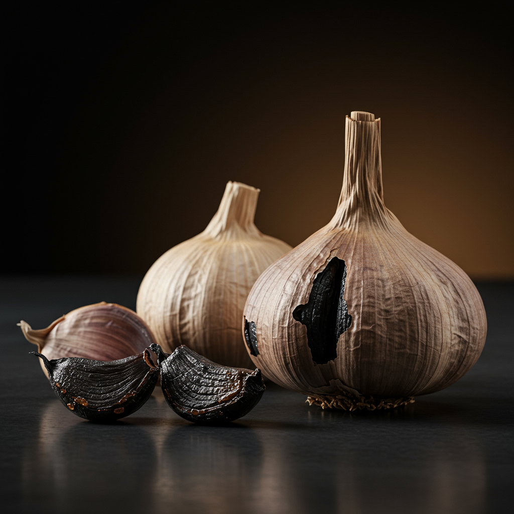 A: 흑마늘은 일반 마늘을 특정 온도와 습도에서 장시간 숙성시킨 발효식품입니다. 이 과정에서 마늘 특유의 매운맛과 냄새는 줄어들고, S-아릴 시스테인(SAC)과 같은 항산화 성분 함량이 크게 증가하여 효능이 더욱 강력해집니다.